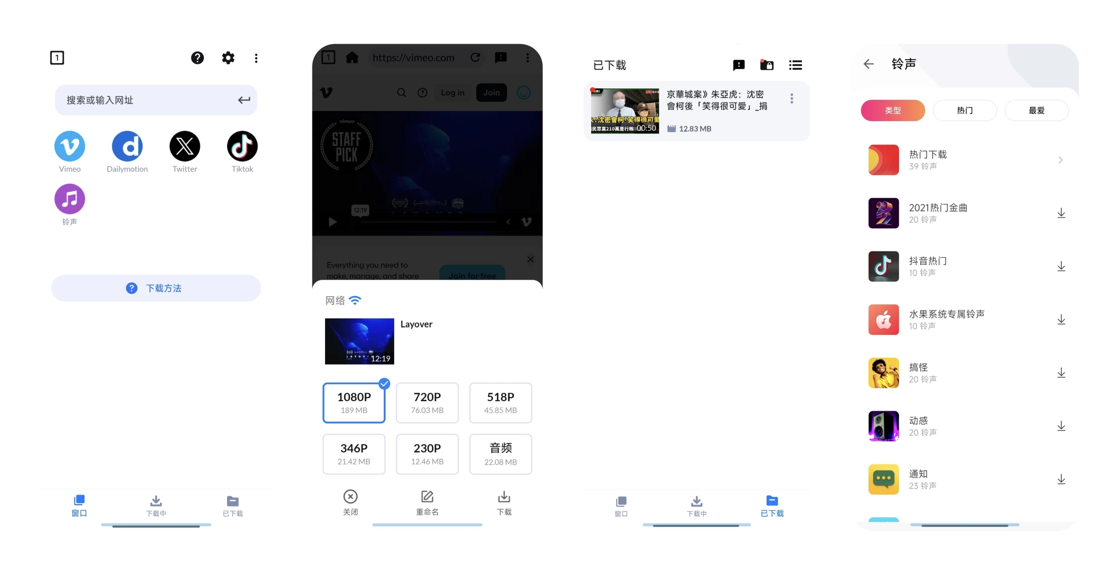 视频下载器是一款适用于Android平台的多功能下载工具,可帮助用户直接从互联网下载各类视频和音乐至手机。能自动检测网页中的视频,也支持手动选择音频文件下载,内置浏览器与播放器,实现在线观看和离线播放的无缝切换。同时配备强大的下载管理功能,支持多任务下载、后台下载,还可将文件存放至密码保护文件夹,兼顾使用的便捷性与安全性,此版本支持国外视频无限制下载。