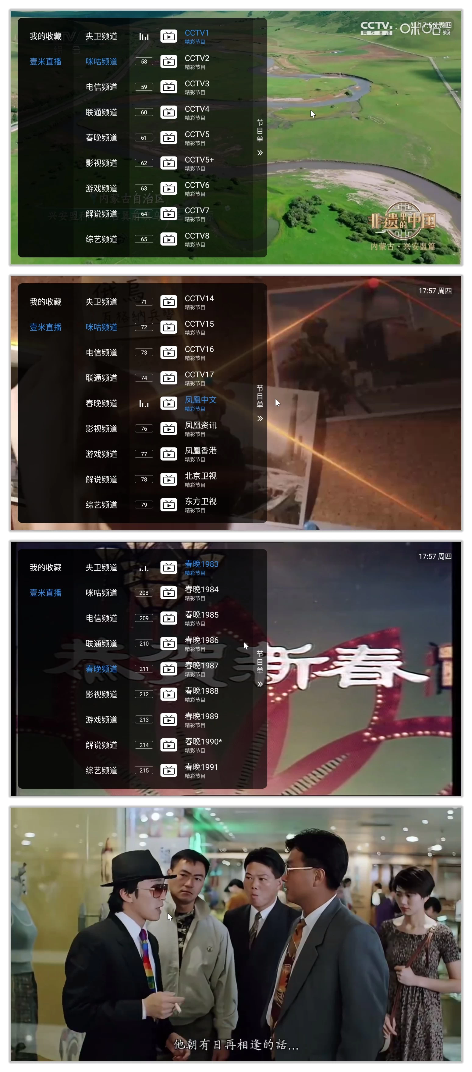 壹米电视是基于酷9深度定制的电视端应用软件,延续了酷9稳定的播放架构与简洁的交互逻辑。此版本已内置完整频道列表,用户安装后无需额外设置,就能直接观看央视、卫视、地方台及特色轮播频道。软件启动后,会进入分类清晰的主界面,左侧设有“央视”“卫视”“地方”“影视”“体育”“国际”等导航标签,右侧展示对应频道卡片。作为免配置版本,其最大亮点是开箱即用,用户无需导入M3U链接或调试接口,避免了因直播源失效或格式错误造成的使用困扰。播放界面简洁,支持全屏操作、音量与亮度滑动调节,且适配红外遥控器操作。