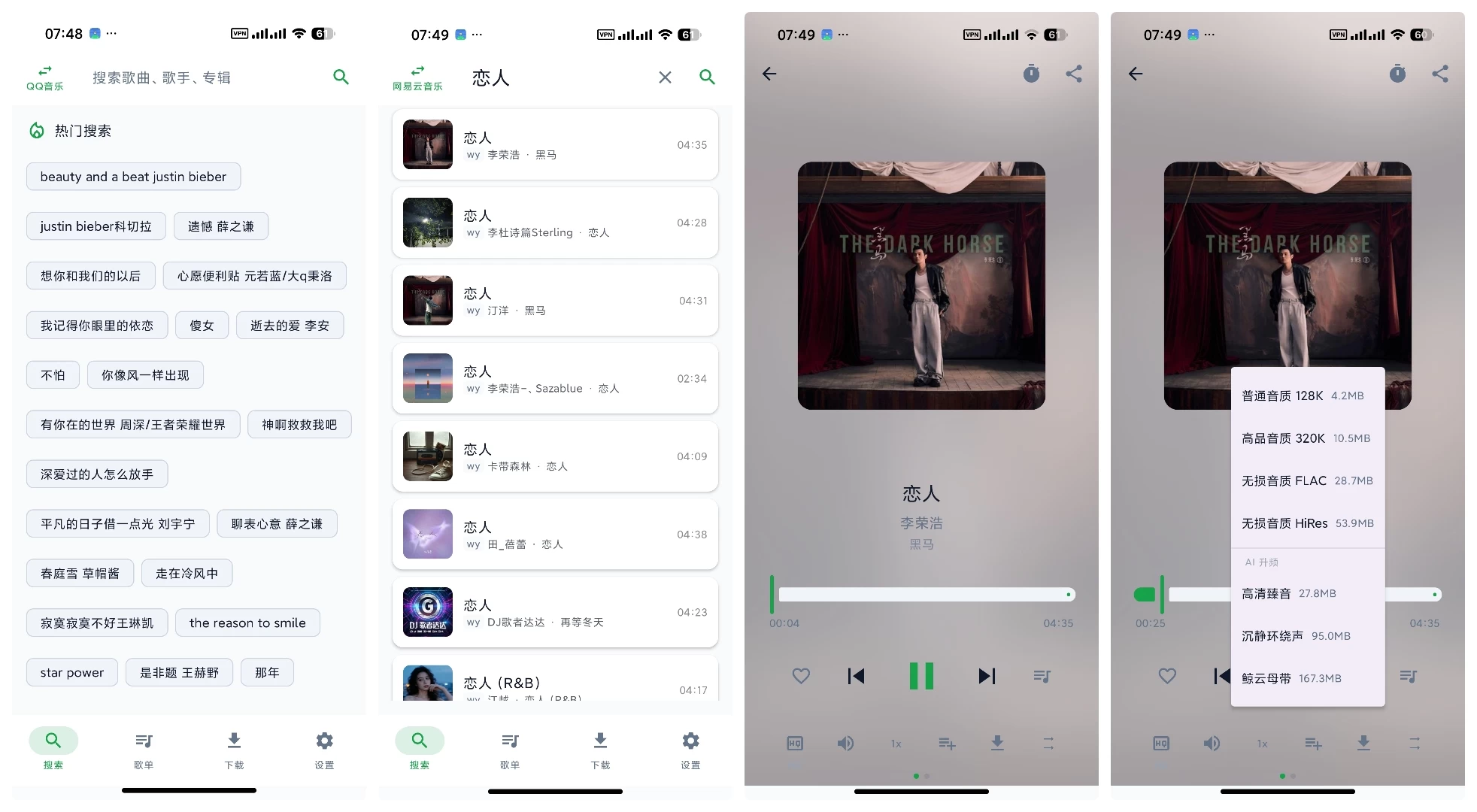 同时,该软件聚合全网音乐,支持超清母带下载。