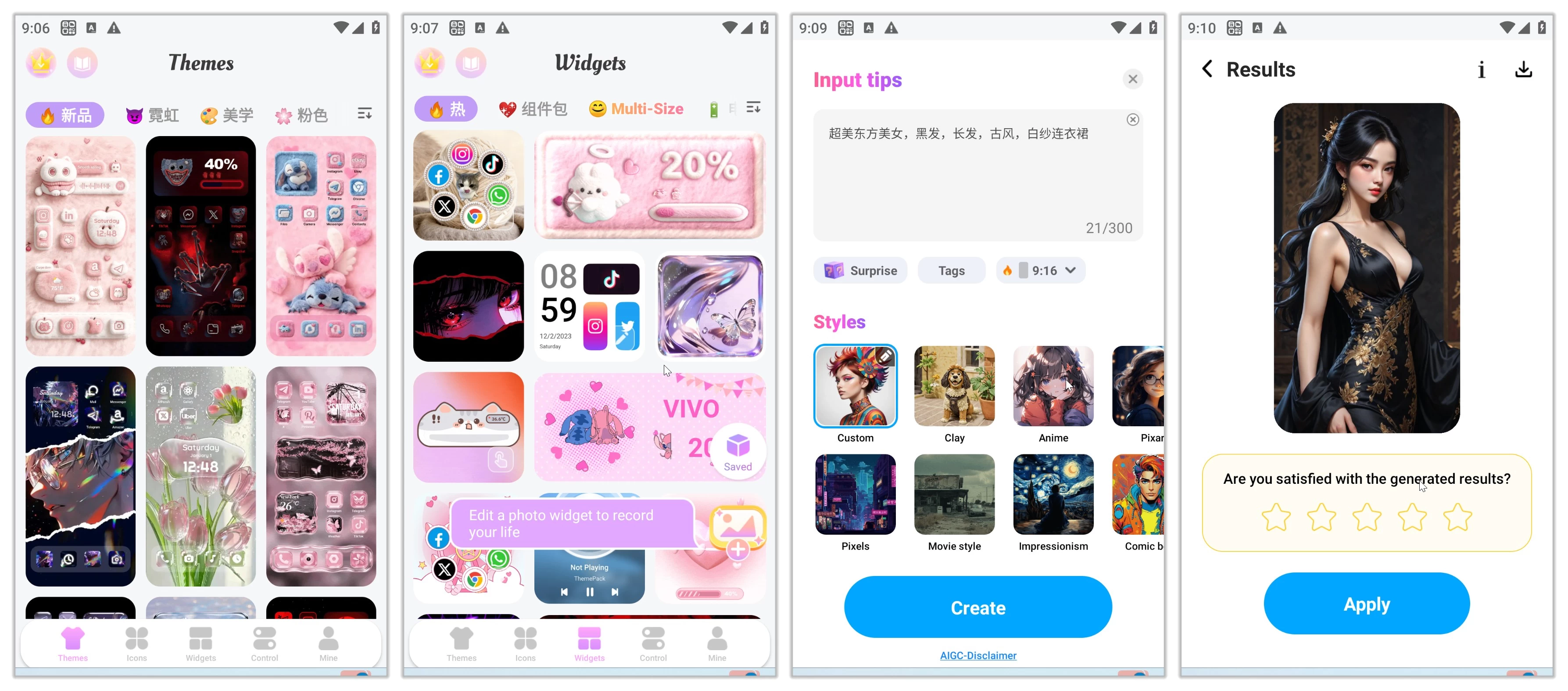 Themepack是一款聚焦于个性化手机界面打造的应用程序,着重通过对图标和小部件的定制来优化用户手机使用体验。它具备丰富功能,提供众多预设小部件与动态壁纸,同时赋予用户自由设计和调整这些元素的权利,满足个人喜好与需求。具体功能包括:拥有可定制的小部件,用户能够自由选择并设计,如调整尺寸、颜色、字体和布局;提供多样化的小部件类型,涵盖时间、天气等小型便捷获取信息的小部件;具备动态视觉效果,通过动态壁纸增强手机视觉体验;支持个人图片集成,可将个人照片用作壁纸并进行美化处理;允许DIY图标,从形状、颜色到表情符号每个细节皆能自定义;提供广泛的风格选项,方便用户更改手机主屏幕图标外观;还支持自定义图标命名,进一步提升个性化程度。此外,内置无限AI生图功能(介绍中未详细阐述此功能使用方式)。