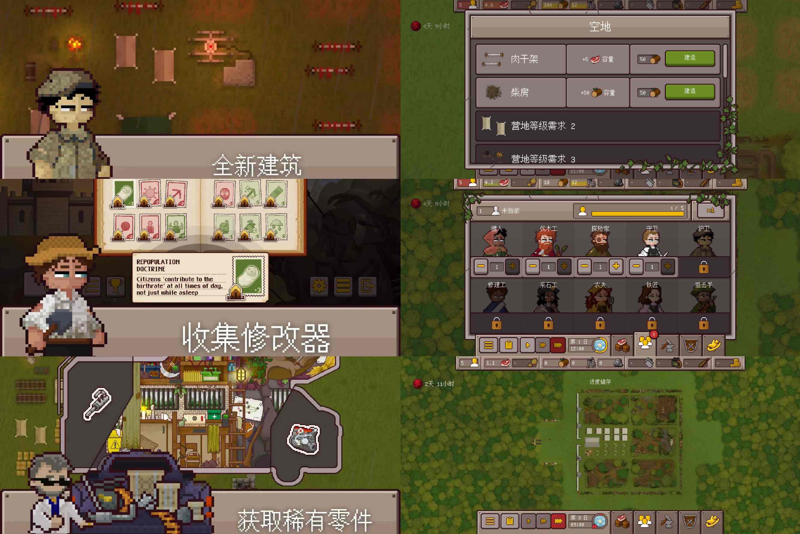 - 幸存者升级养成:可升级幸存者技能,提升资源收集、防御作战、建筑修复等效率,强化团队整体生存能力。
