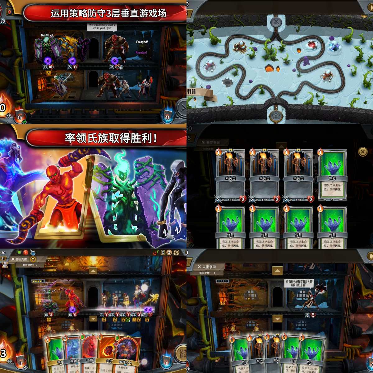 《怪物火车》核心玩法为三层纵向列车战场防御,玩家需搭配卡组抵御天堂大军,守护地狱最后的薪火。游戏包含5大特色怪物氏族、250+张卡牌、氏族等级与勇者升级系统,支持主副氏族组合构筑专属牌组,地图与事件随机生成,每局体验完全不同,已整合全部官方更新内容,策略深度极强。